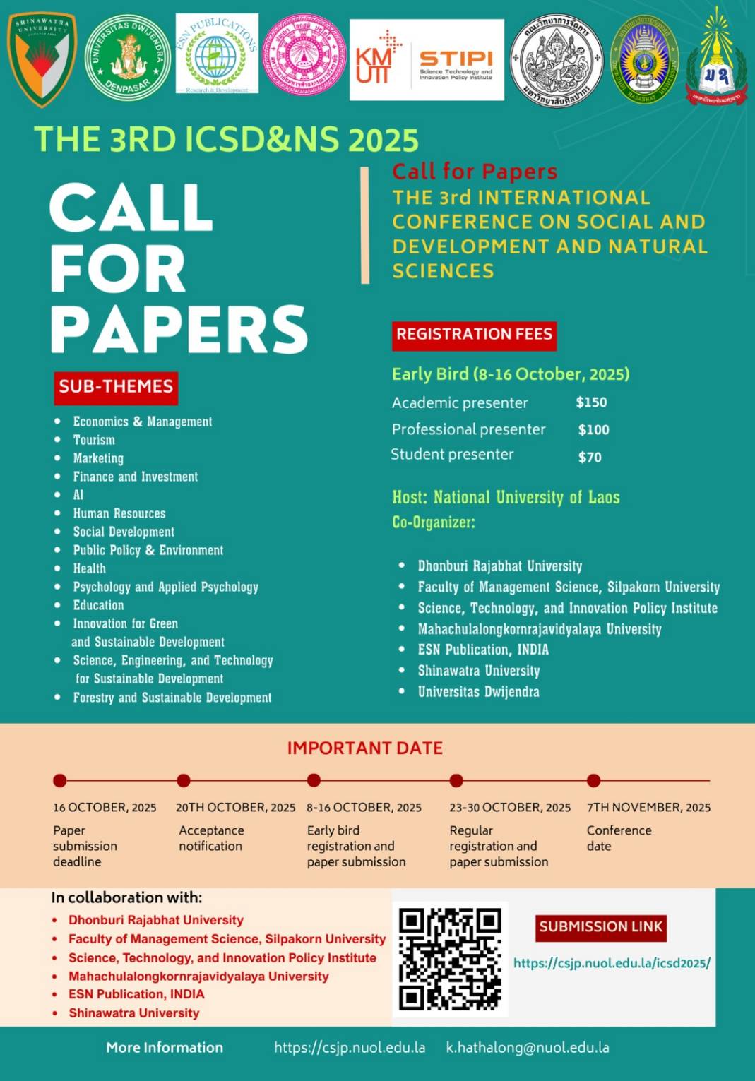 ผู้สนใจสามารถลงทะเบียนเข้าร่วมงานฯ ได้ที่ csjp.nuol.edu.la/icsd2025