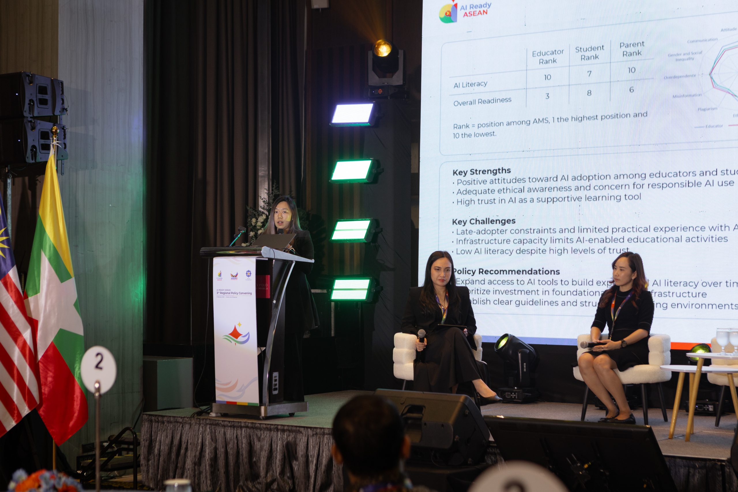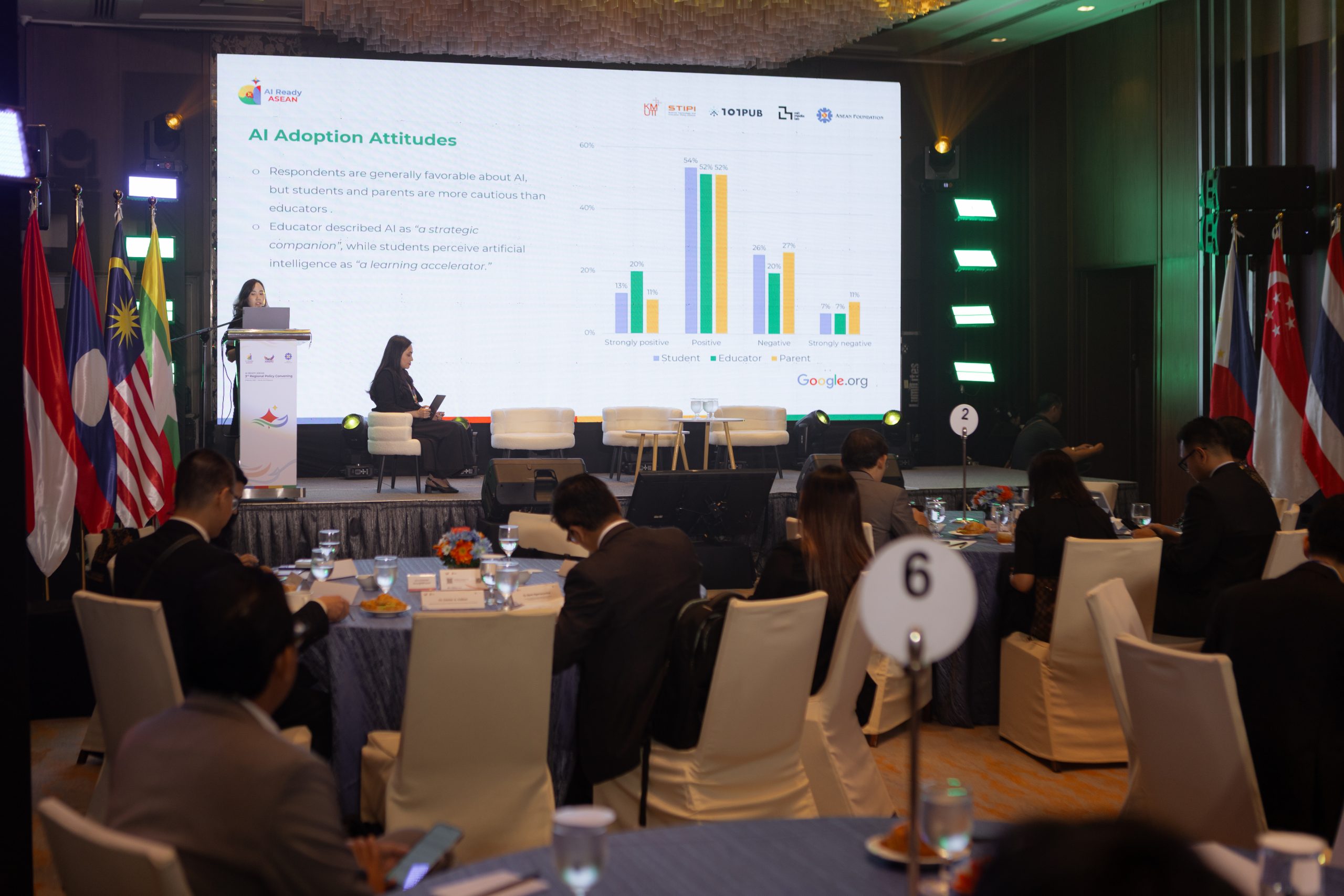 การประชุมครั้งนี้ คณะนักวิจัยได้นำเสนอผลการศึกษาจากโครงการ “Assessing Artificial Intelligence Readiness in ASEAN Educational Contexts” ซึ่งได้รับทุนสนับสนุนจาก ASEAN Foundation และ Google.org โดยมีความร่วมมือทางวิชาการร่วมกับ ผศ.ดร.พัทน์ ภัทรนุธาพร จาก Massachusetts Institute of Technology (MIT) และ 101PUB ประเทศไทย