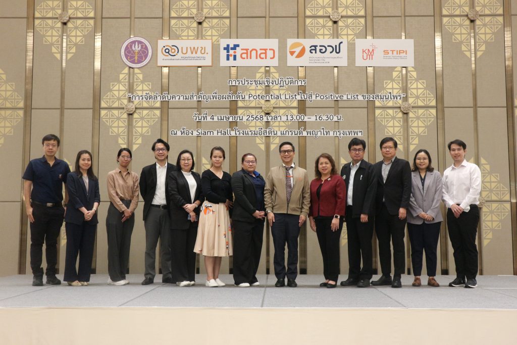 การจัดประชุมเชิงปฏิบัติการครั้งนี้มีเป้าหมายเพื่อจัดลำดับความสำคัญ Potential List ไปสู่ Positive List จากมุมมองของภาคเอกชนในอุตสาหกรรม พร้อมเปิดโอกาสให้อภิปรายแลกเปลี่ยนแนวทางการใช้ประโยชน์และขับเคลื่อน Potential List และ Positive List ของสมุนไพร โดยภายในงาน ดร.แบ๊งค์ งานอรุณโชติ ผู้อำนวยการสถาบันฯ และหัวหน้าโครงการได้เล่าที่มาและความสำคัญของการจัดทำ Potential List ของสมุนไพร จนถึงการส่งผลต่อการศึกษาและการจัดทำนโยบายในอนาคต และได้รับเกียรติจาก ศาสตราจารย์.ดร.ณัฐดนัย หาญการสุจริต ผู้อำนวยการแผนอาหารมูลค่าสูง (บพข.) ร่วมแลกเปลี่ยนเรียนรู้เรื่อง “แนวทางการผลักดัน Potential List ไปสู่ Positive List ของสมุนไพร” คุณสิรินยา ลิม ผู้อำนวยการฝ่ายอาวุโส สำนักงานสภานโยบายการอุดมศึกษา วิทยาศาสตร์ วิจัยและนวัตกรรม (สอวช.) ซึ่งเป็นหน่วยงานนำเสนอแนวทางการใช้ประโยชน์และผลักดันสมุนไพรไทย ร่วมให้มุมมองในประเด็น “การส่งต่อผลการศึกษาเพื่อสนับสนุนการจัดทำนโยบายส่งเสริมอุตสาหกรรมอาหารแห่งอนาคต (Future Food) โดยความคิดเห็นและผลการจัดกิจกรรมจะถูกส่งต่อแก่หน่วยงานพันธมิตรในการขับเคลื่อนสู่การนำไปใช้ประโยชน์ต่อไป