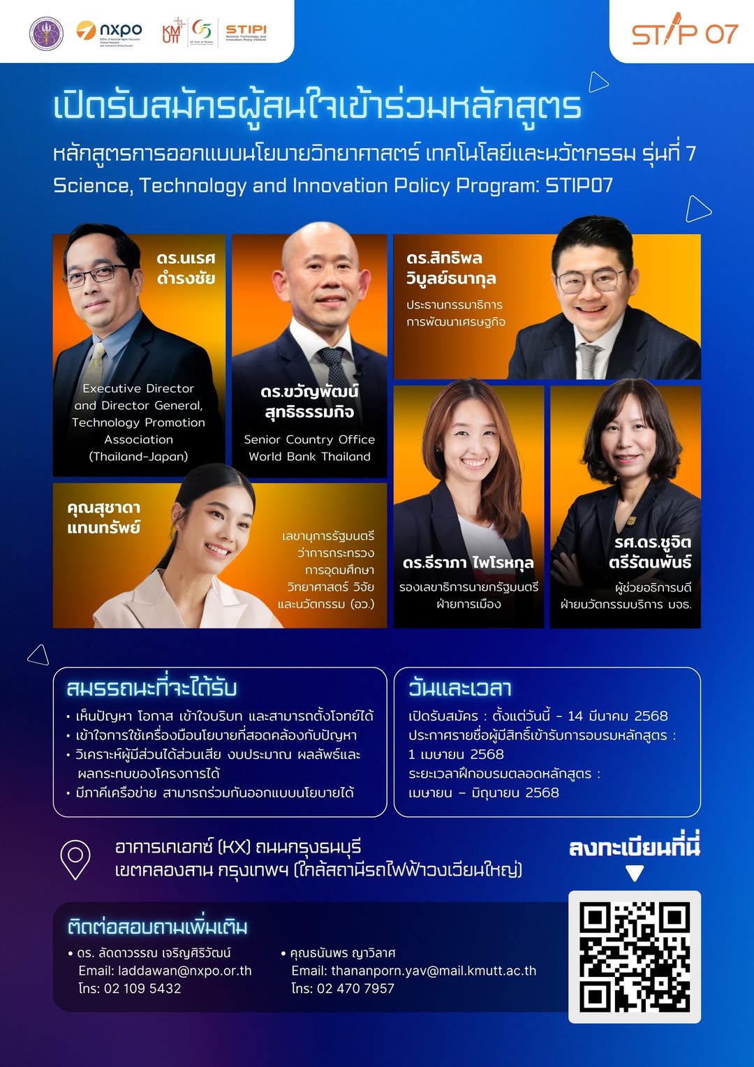 พิธีเปิดการอบรมหลักสูตรการออกแบบนโยบายวิทยาศาสตร์ เทคโนโลยีและนวัตกรรม รุ่นที่ 7 (STIP07)