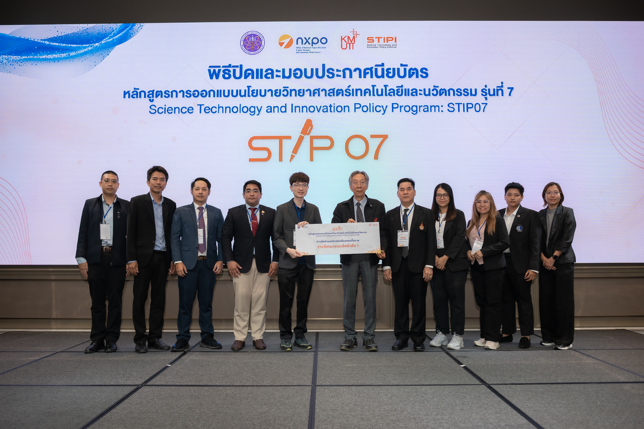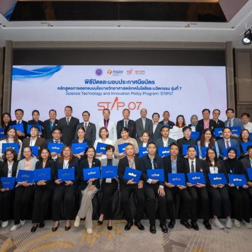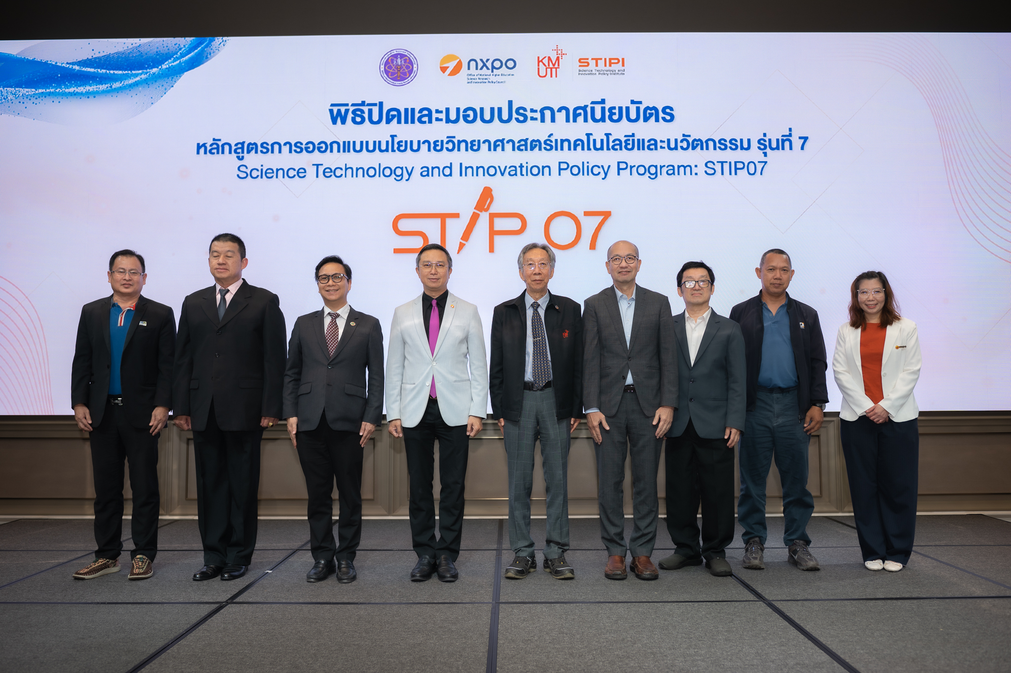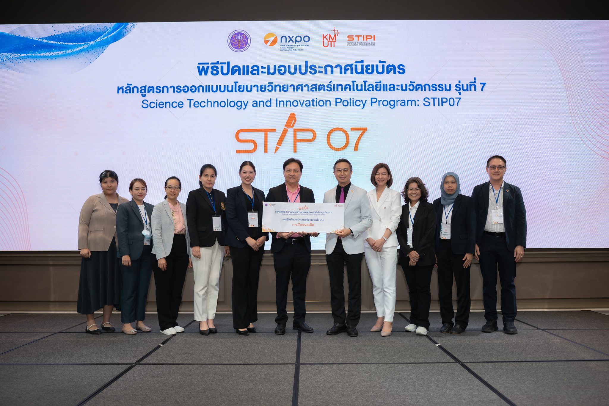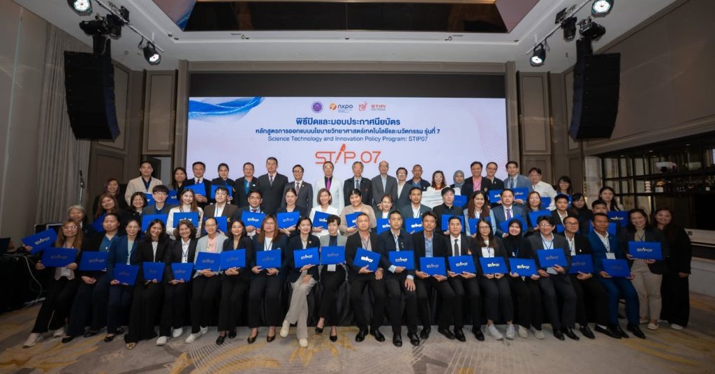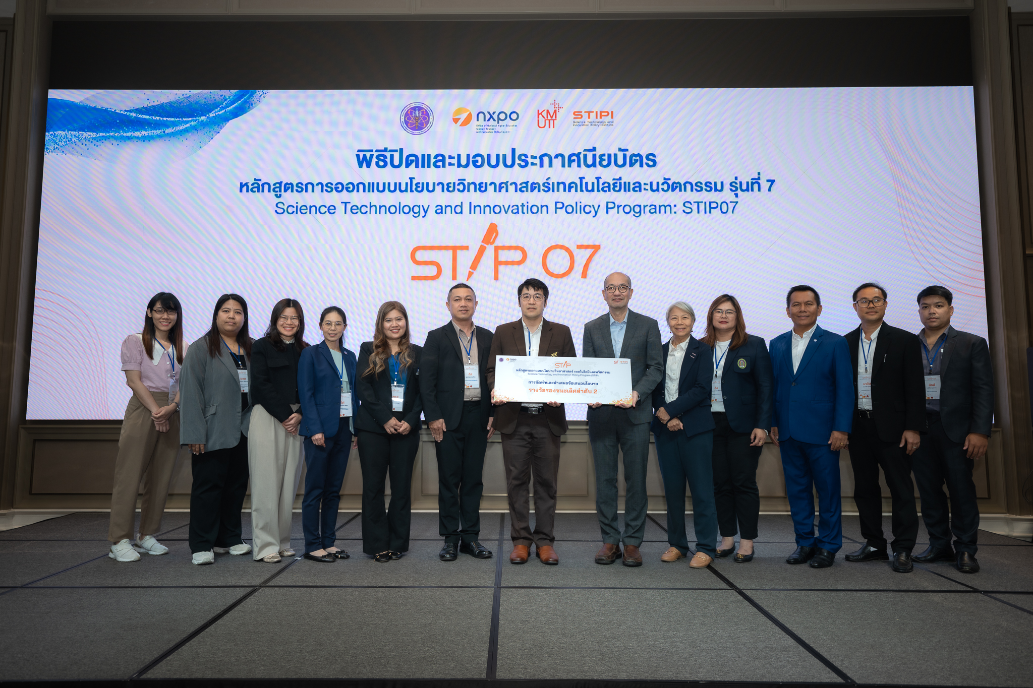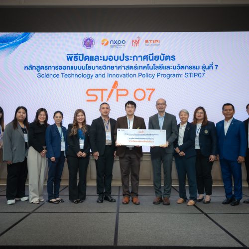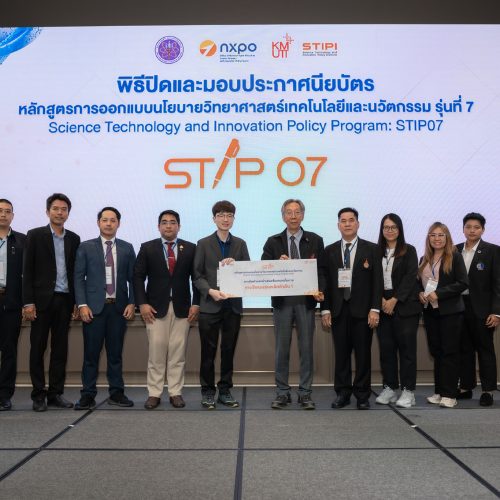 พิธีปิดและมอบประกาศนียบัตร “หลักสูตรการออกแบบนโยบายวิทยาศาสตร์ เทคโนโลยีและนวัตกรรม รุ่นที่ 7 (STIP07) วันศุกร์ที่ 27 มิถุนายน 2568 ณ โรงแรม แกรนด์ เซนเตอร์ พอยต์ ลุมพินี กรุงเทพฯ