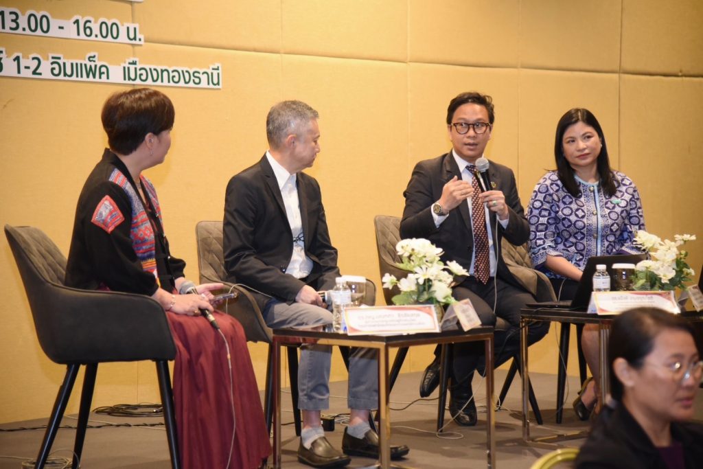 ได้ร่วมเสวนา ถ่ายทอด และแลกเปลี่ยนมุมมอง ร่วมกับ ดร.ภญ.มณฑกา ธีรชัยสกุล ผู้อำนวยการกองเศรษฐกิจสมุนไพร กรมการแพทย์แผนไทยและการแพทย์ทางเลือก, คุณศุภชัย กิมชูวาณิช บริษัท โชคชัย เฮิร์บ จำกัด และ ดร.ภญ.ประภัสสร สุรวัฒนาวรรณ ผู้อำนวยการฝ่ายสมุนไพรและเภสัชเคมีภัณฑ์ องค์การเภสัชกรรม (GPO)