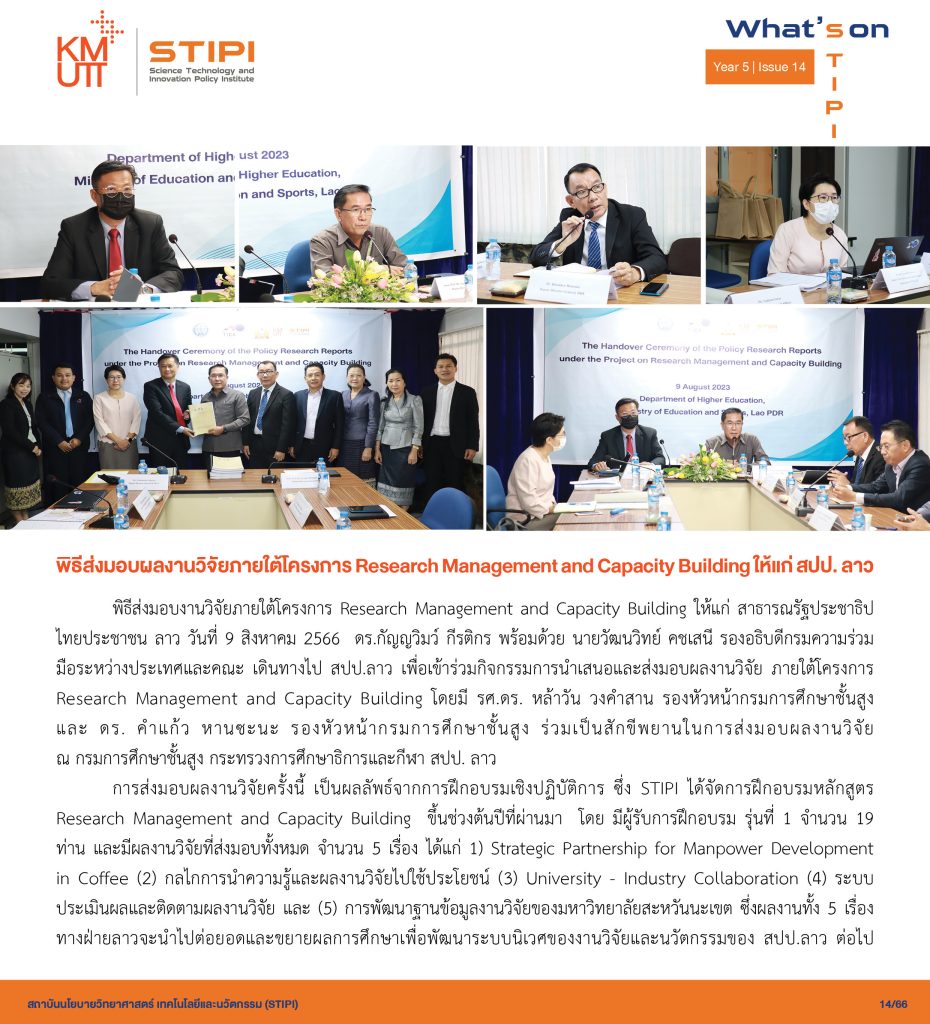 November 18, 2024August 19, 2025 Post Views: 8 Tags : #RMCB01 Social Icon : Post navigation Previous Article สอวช. – มจธ. จัดพิธีปิดหลักสูตรนักออกแบบนโยบายวิทยาศาสตร์ เทคโนโลยีและนวัตกรรม รุ่นที่ 5Next post: Next Article International Conference on Industrial Policy 2023 : Advancing Industrial Policy in the Era of Strategic Communication Previous post: