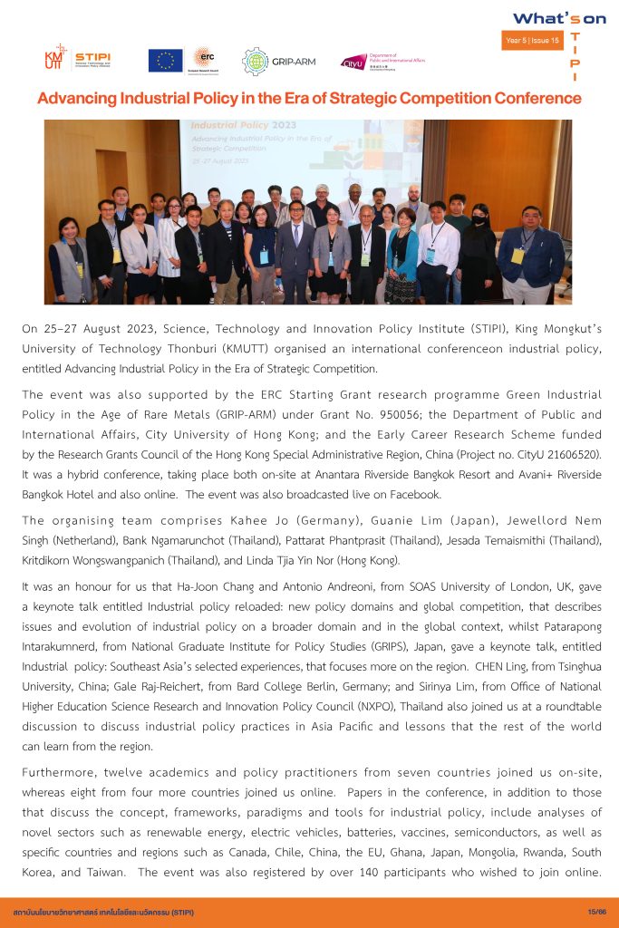 On 25-27 August 2023, Science, Technology and Innovation Policy Institute (STIPI), King Mongkutís