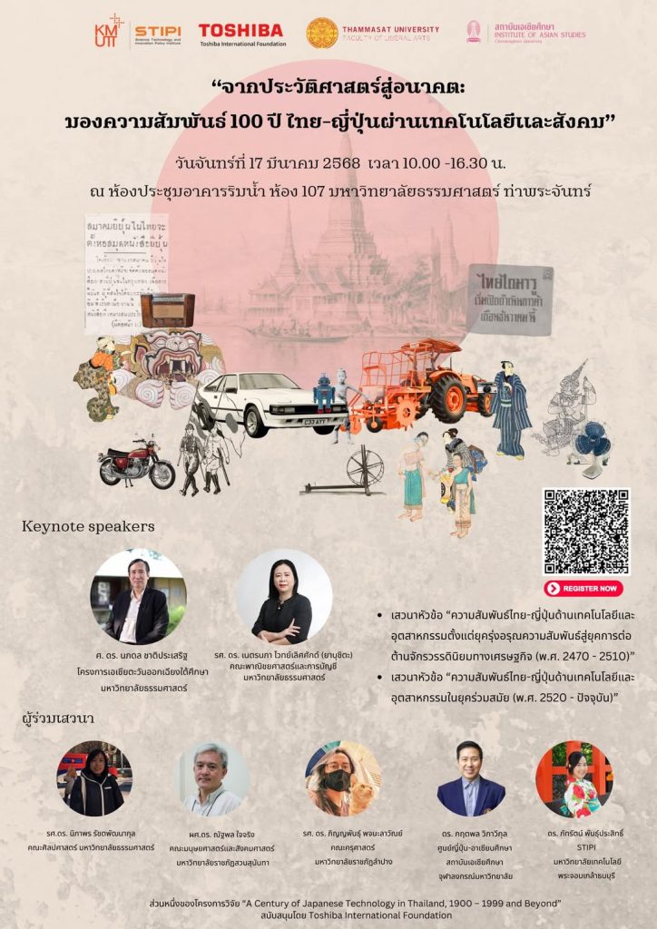 ขอเชิญผู้สนใจเข้ารับฟังการเสวนา หัวข้อ “จากประวัติศาสตร์สู่อนาคต: มองความสัมพันธ์ 100 ปีไทย-ญี่ปุ่นผ่านเทคโนโลยีและสังคม”