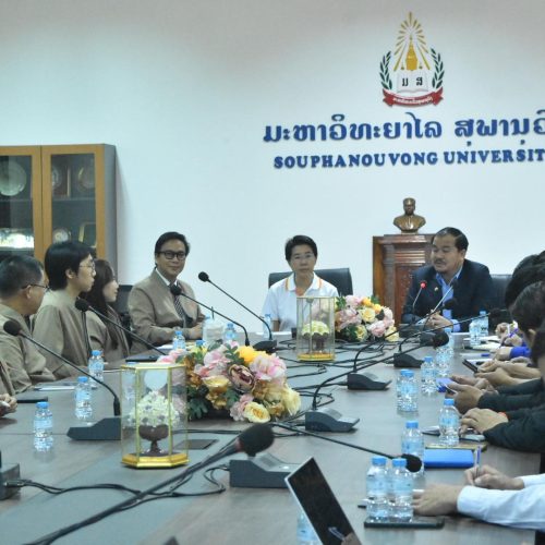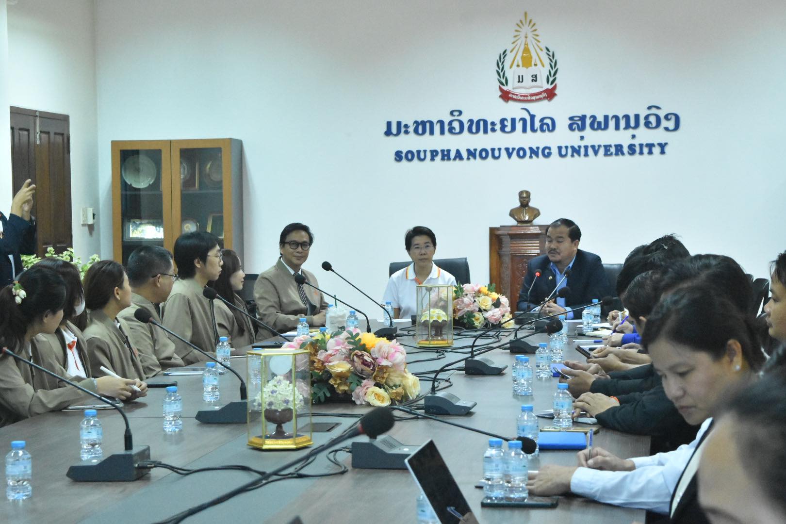 ดร.กัญญวิมว์ กีรติกร รองอธิการบดีอาวุโสฝ่ายวิจัยและนวัตกรรม มจธ. พร้อมคณะบุคลากรจาก STIPI เข้าเยี่ยมชมการดำเนินงานของ มหาวิทยาลัยสุภานุวงศ์ (SU) หลวงพระบาง สปป.ลาว เพื่อสร้างความร่วมมือระหว่างมหาวิทยาลัย